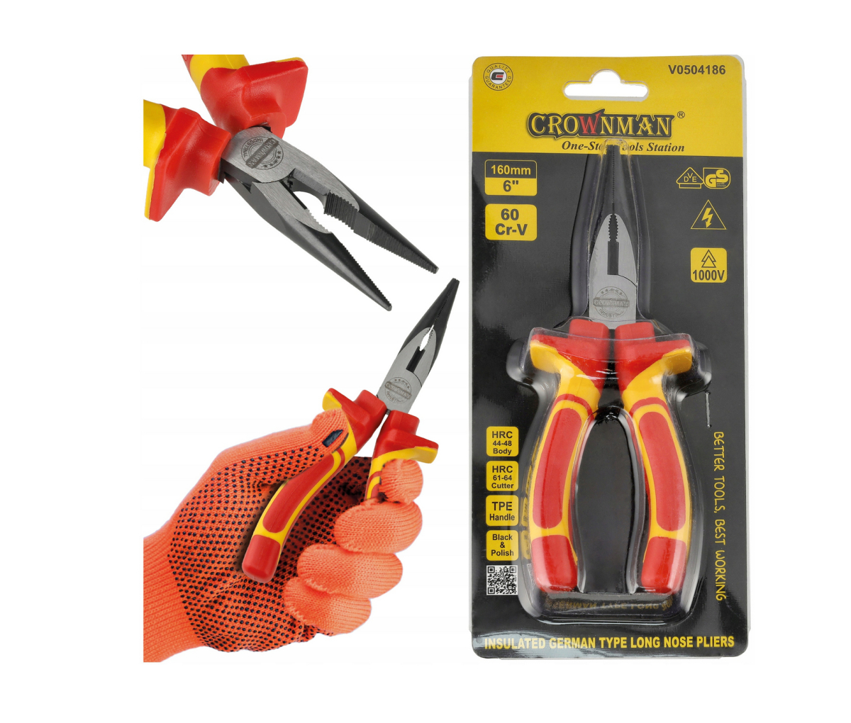 Crownman Szigetelt hosszú vágófogó 160 mm