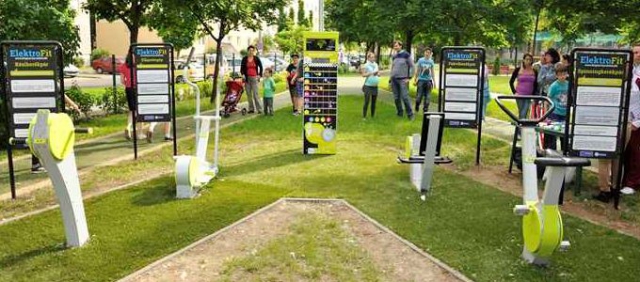 Áramot termelő fitneszgépeket helyezett ki a kispesti önkormányzat a központi játszótérre.