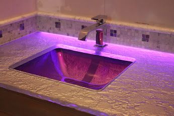 Érdemes megvilágítani a konyhapultokat is, még egyedibb hatást érünk el, ha maga a pult nem valamilyen kőből van, hanem üvegfelület.