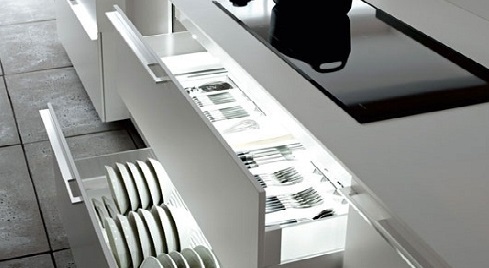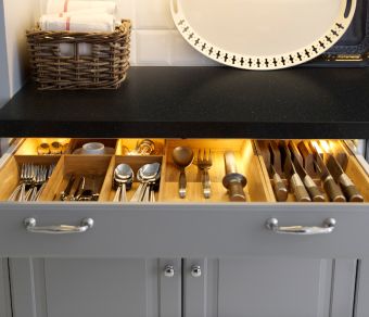 Egyszerre hangulatos és hasznos az étkészlet megvilágítása, a fiókvilágításnak köszönhetően hamarabb megtalálunk mindent még a fiók alján is.