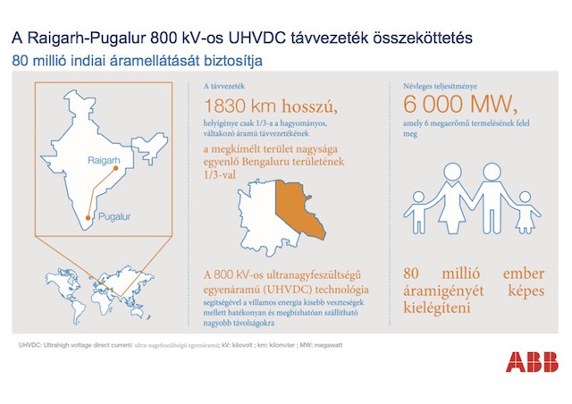 Az ABB – együttműködésben az indiai országos villamosenergia-hálózat üzemeltetőjével, a Power Grid Corporation of India Limiteddel (POWERGRID)- 640 millió dollár értékű megaprojekt kivitelezésére kapott megbízást. A projekt keretében a cég olyan nagyteljesítményű távvezeték-összeköttetést szállít, amely több mint 80 millió ember biztonságos áramellátást képes biztosítani. A Raigarh-Pugalur-távvezeték 800 kV-os ultra-nagyfeszültségű egyenáramú (UHVDC) rendszer, amely a közép-indiai Raigarh-t köti össze a dél-indiai Tamil Nadu államban található Pugalurral.