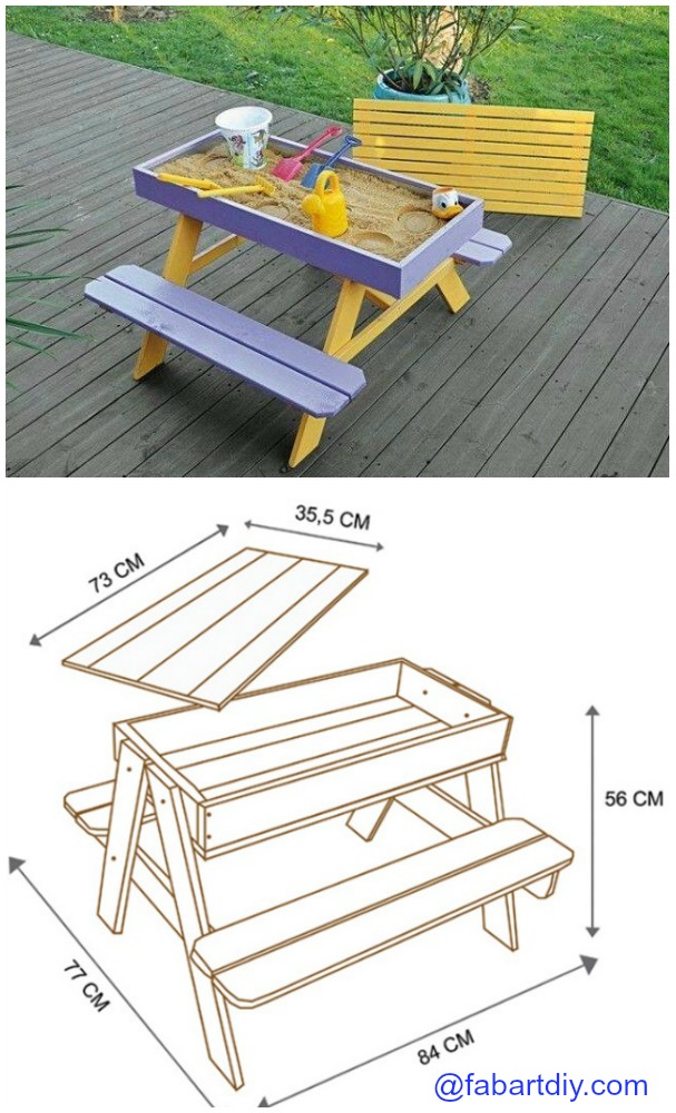 Ez az első látásra is igazán kellemes látványt nyújtó piknikasztal már önmagában is hívogató, de ennek a kerti bútornak bizony rejtett funkiója is van! A leemelhető asztallap alatt egy kis homokozó rejlik, amely lehetővé teszi, hogy gyermekünk önfeledten játszhasson, amikor csak kedve tartja. Ráadásul akár raklapból is elkeszíthető, nézzétek csak!