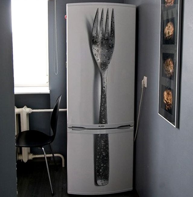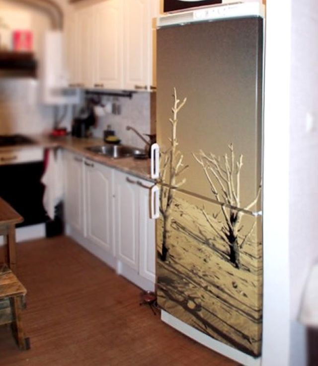 De lehet tájképes tapétába, és bármilyen szokatlan mintába is burkolni a hűtőt igazi színfolt lesz a konyhában!