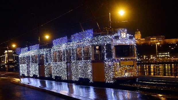 Elindultak a BKV karácsonyi nosztalgiajáratai, a fényvillamos, illetve egy szintén LED-ekkel díszített troli.