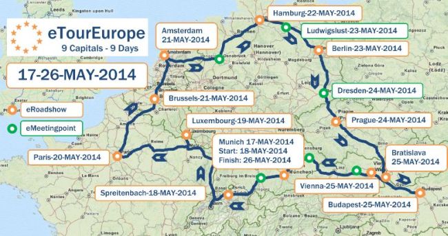 A túra során elektromos autókkal 9 nap alatt 9 fővárosban jártak – köztük Párizsban, Berlinben, Prágában, Pozsonyban, Budapesten és Bécsben is.
