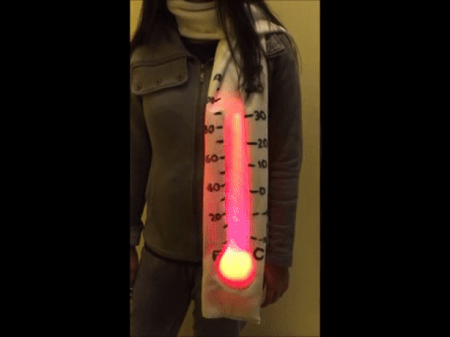 Bankkártyaméretű miniszámítógépből már sok ötletes dolgot barkácsoltak a hobbiprogramozók, ám mindig van új a nap alatt. Például ez a sálba rejtett, LED fényekben pompázó hőmérő.