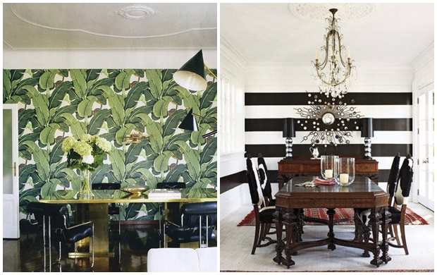 Ne félj az extrém mintás vagy geometrikus tapétáktól, megfelelő bútorokkal kombinálva nem fogod úgy érezni magad, mint a nagymamád étkezőjében.