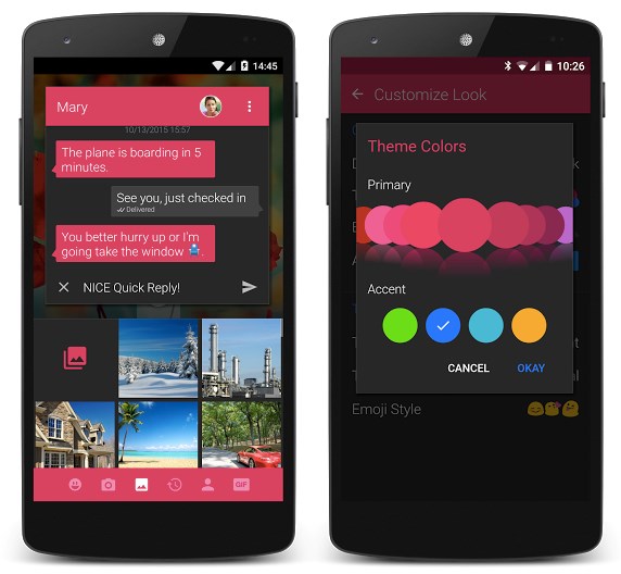 A felhasználói felület és az értesítések minden egyes részletére kitér az app: hátteret, témát, ikonszíneket, szmájlikat, szövegbuborékokat, betűtípust, LED-világítást, hangokat és még sok más részt lehet alakítani. Csak az opciókra kell kattintani, és már meg is jelenik minden lehetőség.