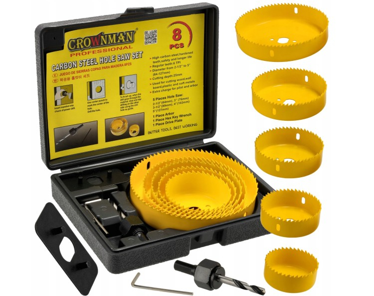 8 darabos készlet: A készlet öt lyukfűrészből áll, amelyek méretei a következők: