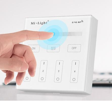 A 4 csatornás falon kívüli Mi Light Dimmer használatával kiváltható a távirányító, további előnye pedig, hogy a falra egyszerűen és kényelmesen felhelyezhető, apró csavarok segítségével.