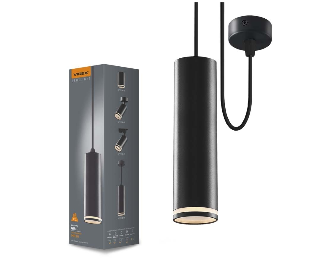 Videx TATUM fekete függesztett lámpa keret, GU10-es foglalattal