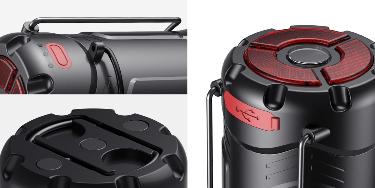 Nagy sebességű Type-C port a zseblámpa töltéséhez . A töltési folyamat során az üzemmódkapcsoló gomb alatt található zseblámpán felváltva pirosan és kéken villog a jelzőfény, a befejezés után pedig kéken világít, ami azt jelenti, hogy teljesen fel van töltve.