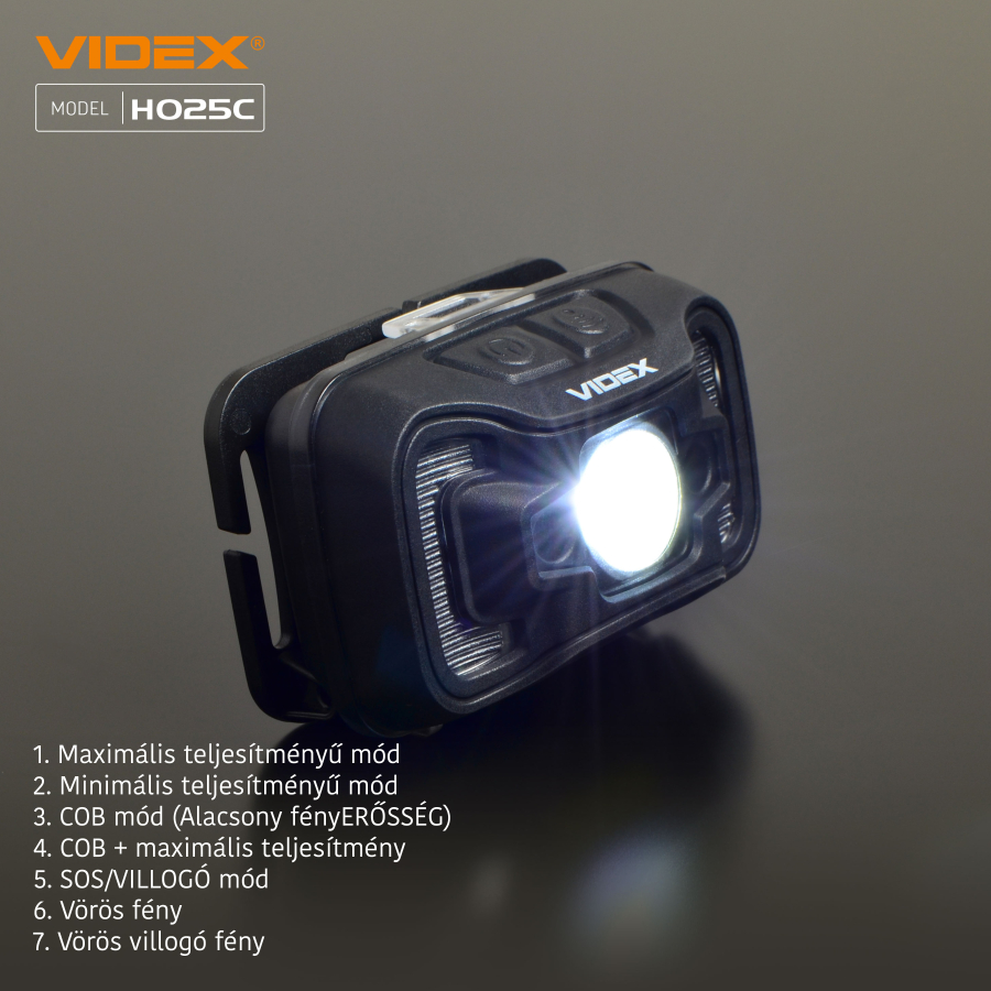 Videx LED Fejlámpa, natúrfehér újratölthető akkumulátorral H025C