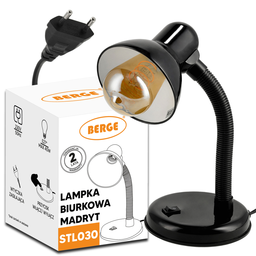 Berge Madrid fekete színű asztali lámpa, E27-es foglalattal