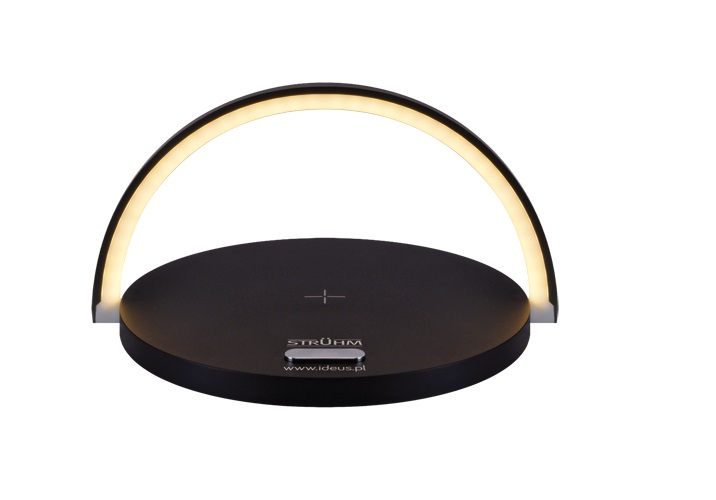 Strühm Saturn asztali lámpa fekete színben vezeték nélküli telefontöltővel