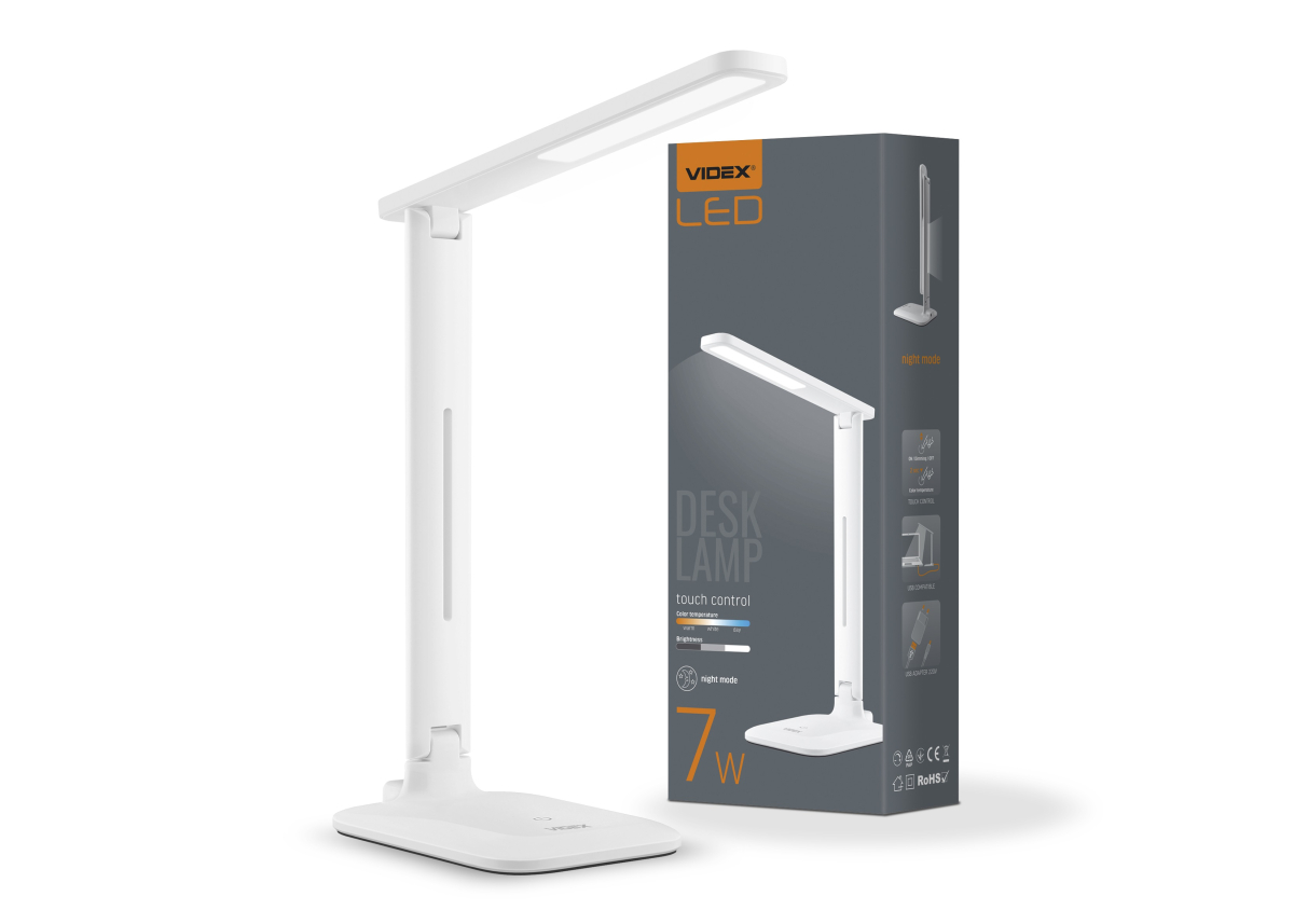 A VIDEX TF02 OSLO LED asztali lámpa egy energiatakarékos világítóeszköz, amely képes változtatni a színhőmérsékletet (3000K, 4000K, 5500K) és a fényerőt (3 fokozat). A vezérlés egy gombnyomással történik. Kiváló választás tanuláshoz, olvasáshoz vagy irodai munkához. A lámpa működhet a mellékelt adapterről vagy például a számítógép USB-portjáról. A lámpa fénye nem villog, és nem fárasztja a szemet az asztalnál végzett huzamosabb munka során. A lámpatest sima és fényes fehér műanyagból készült.
