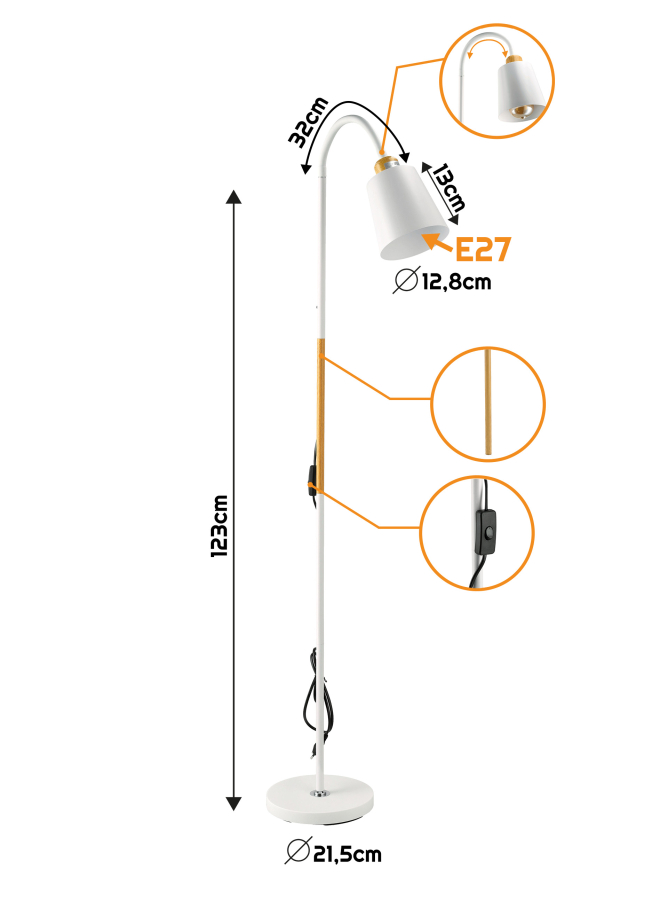 Berge Vienna fa/fehér színű állólámpa, állítható magassággal 120-150 cm, E27-es foglalattal