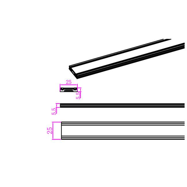 MasterLED LUXO mágneses sín 2 méter hosszú, fekete, 48V