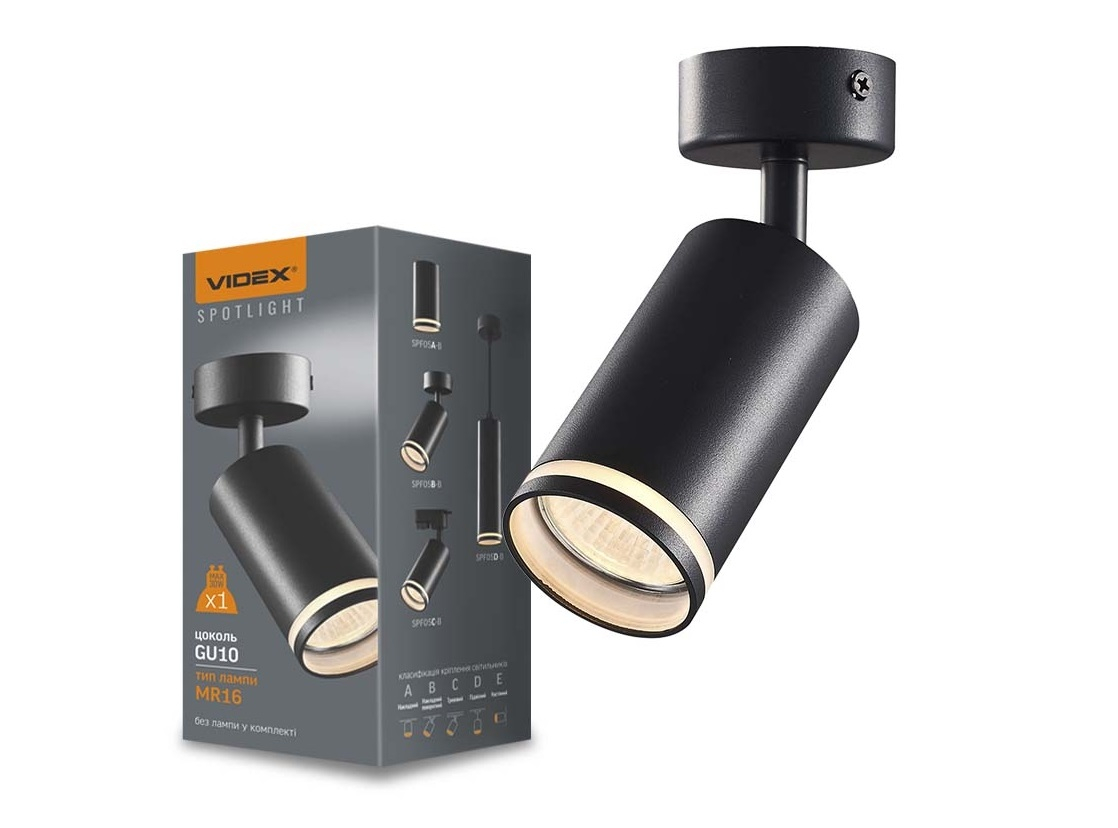 Videx MARTIN fekete mennyezeti lámpa keret, GU10-es foglalattal