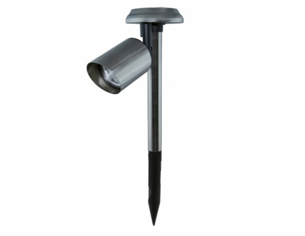 Strühm Zlatan Led króm színű leszúrható napelemes lámpa, anyaga rozsdamentes acél.