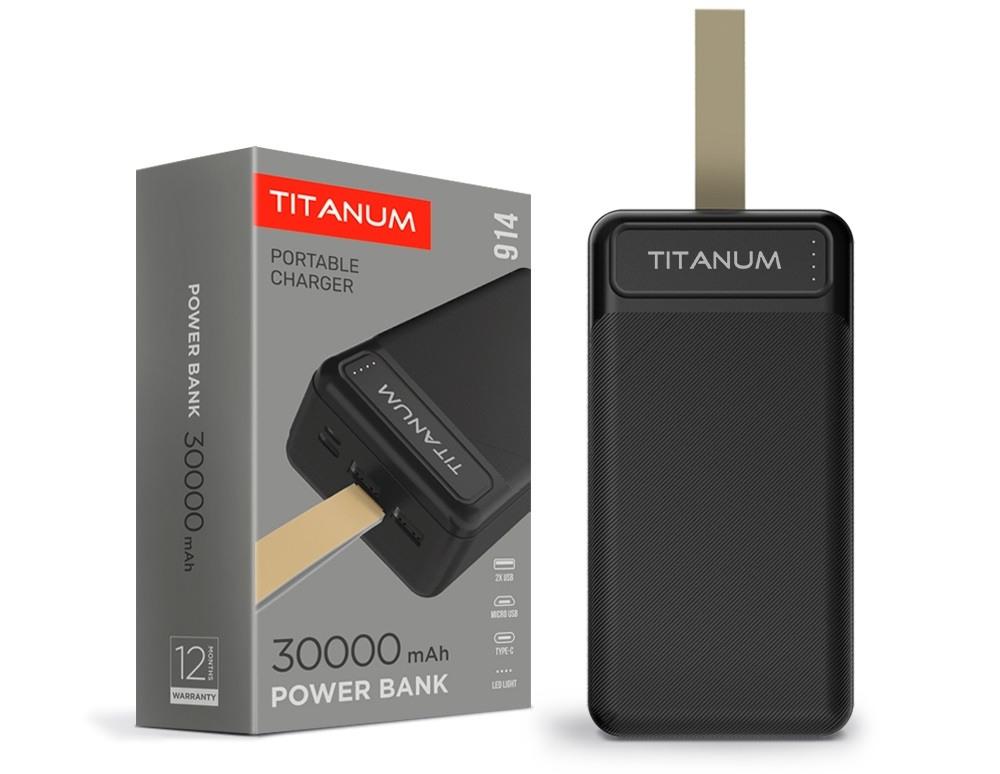 Videx TITANUM power bank, fekete színű, 30000mAh, TPB-914