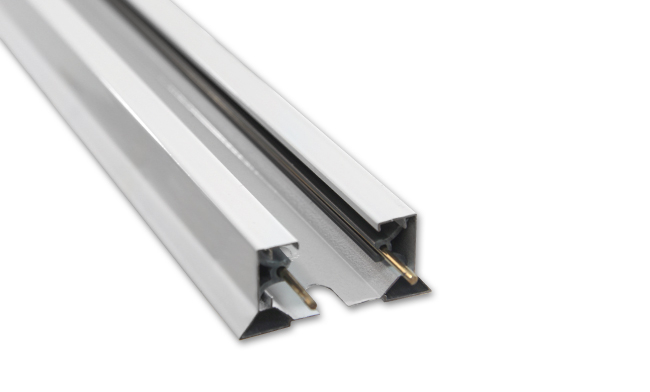 MasterLED sín, anyaga alumínium és réz vezetők, teljes mérete tartozékokkal együtt 1000x40x20, sín méretei: 925x40x20 mm.