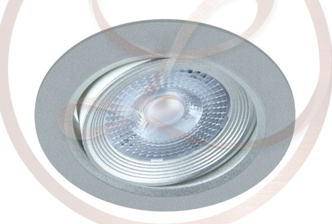 Ezüst színű beépített LED-et tartalmazó spot lámpa, mely 3000 Kelvines melegfehér LED-et tartalmaz.