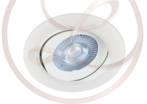 Fehér színű beépített LED-et tartalmazó spot lámpa, mely 3000 Kelvines melegfehér LED-et tartalmaz.