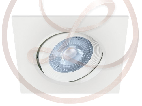 Fehér színű beépített LED-et tartalmazó négyzet alakú spot lámpa, mely 3000 Kelvines melegfehér LED-et tartalmaz.