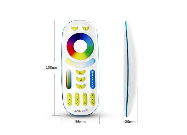 A Mi-Light 4 zónás RGBWW vezérlő egy darab RGBWW LED csoport működtetését teszi lehetővé. A vezérlő működtetéséhez szükséges Mi-Light 4 zónás RGBWW távirányító megvásárlása szükséges.