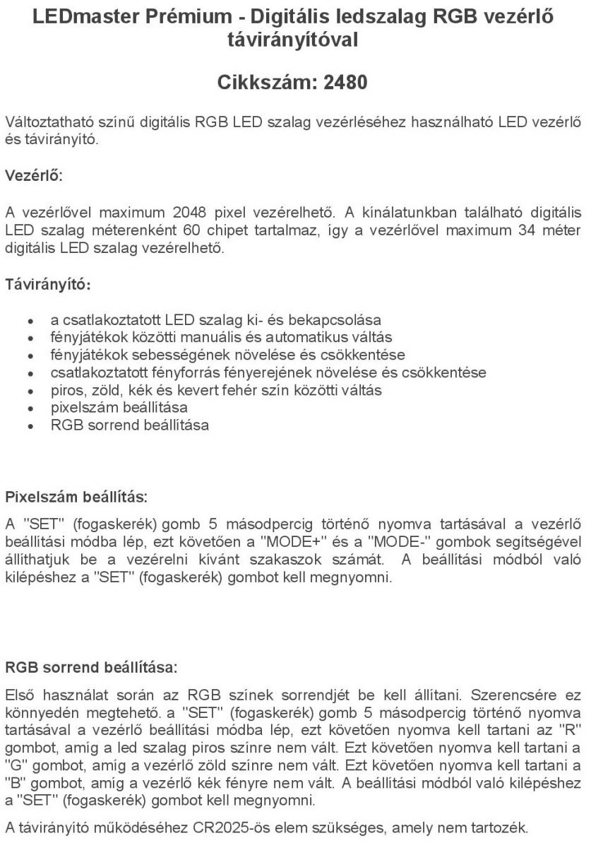 LEDmaster Prémium - Digitális ledszalag RGB vezérlő távirányítóval