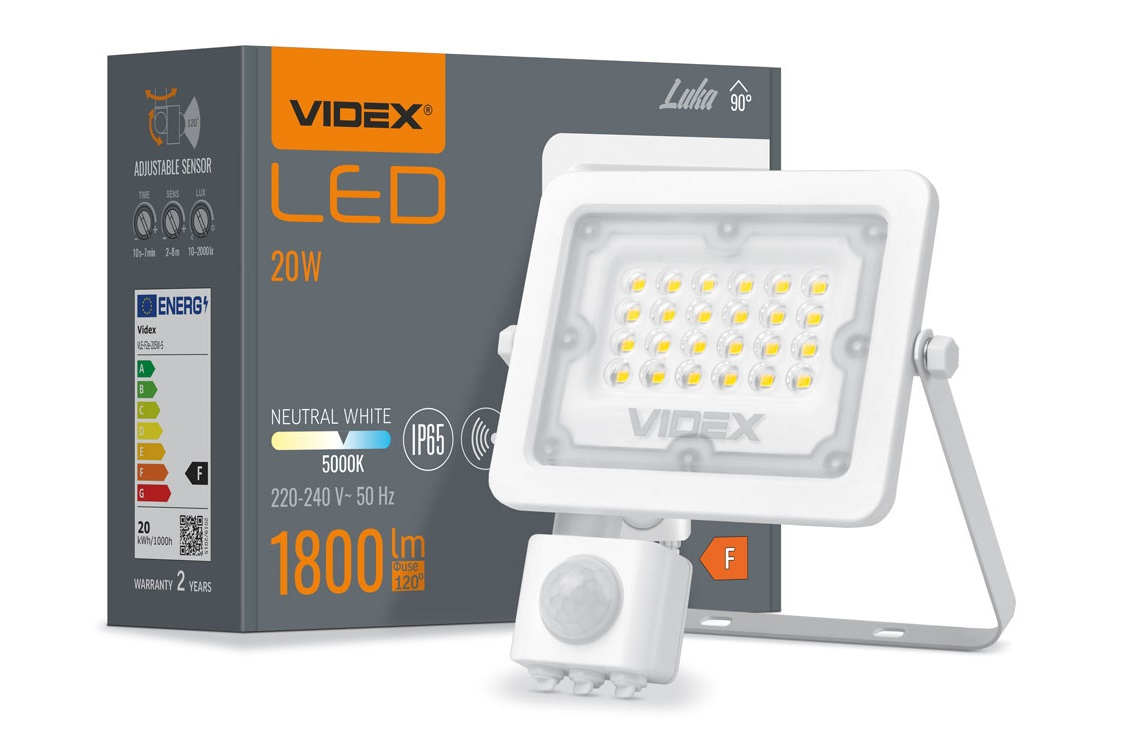 Videx Luka 20 W-os mozgásérzékelős natúrfehér LED reflektor