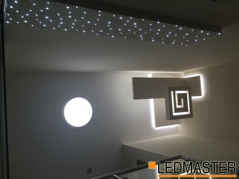 Egyedi LED design galériás családi házba