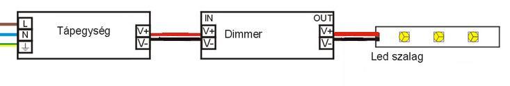 - Ezután csatlakoztathatjuk a 12 Voltos egyenáramú tápegységet a LED fényerőszabályzóhoz.
