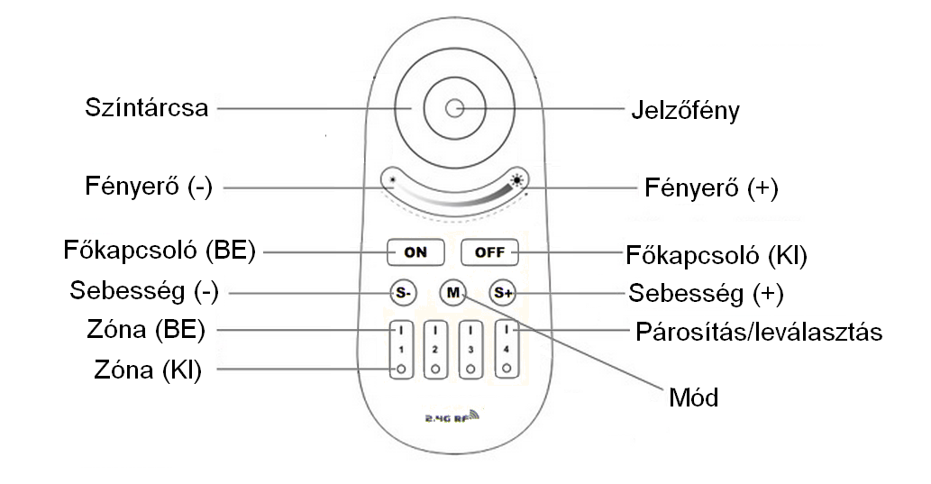 Zónák külön be- és kikapcsolása. Vezérlővel való párosítás/leválasztás.